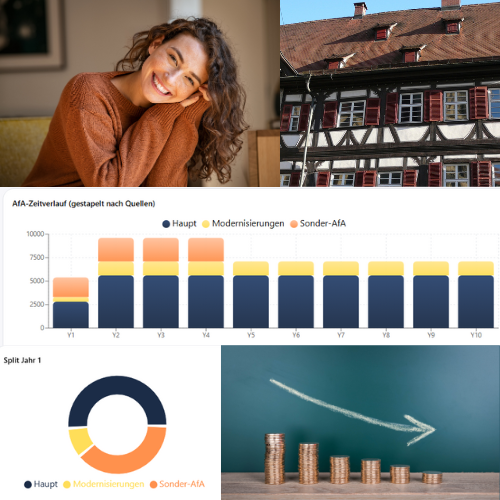 Berechne die jährliche AfA deiner Immobilie, inklusive Gebäudeanteil, Modernisierungen und Sonder-AfA.