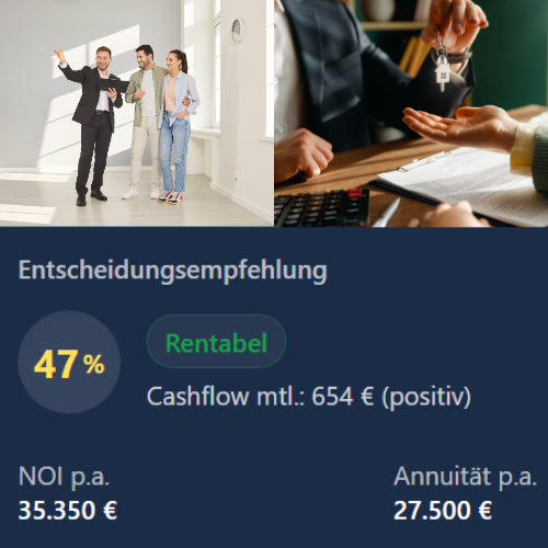Statt dich durch verschiedene Tools zu klicken, findest du hier alles an einem Ort – von der Renditeanalyse bis zur steuerlichen Abschreibung.