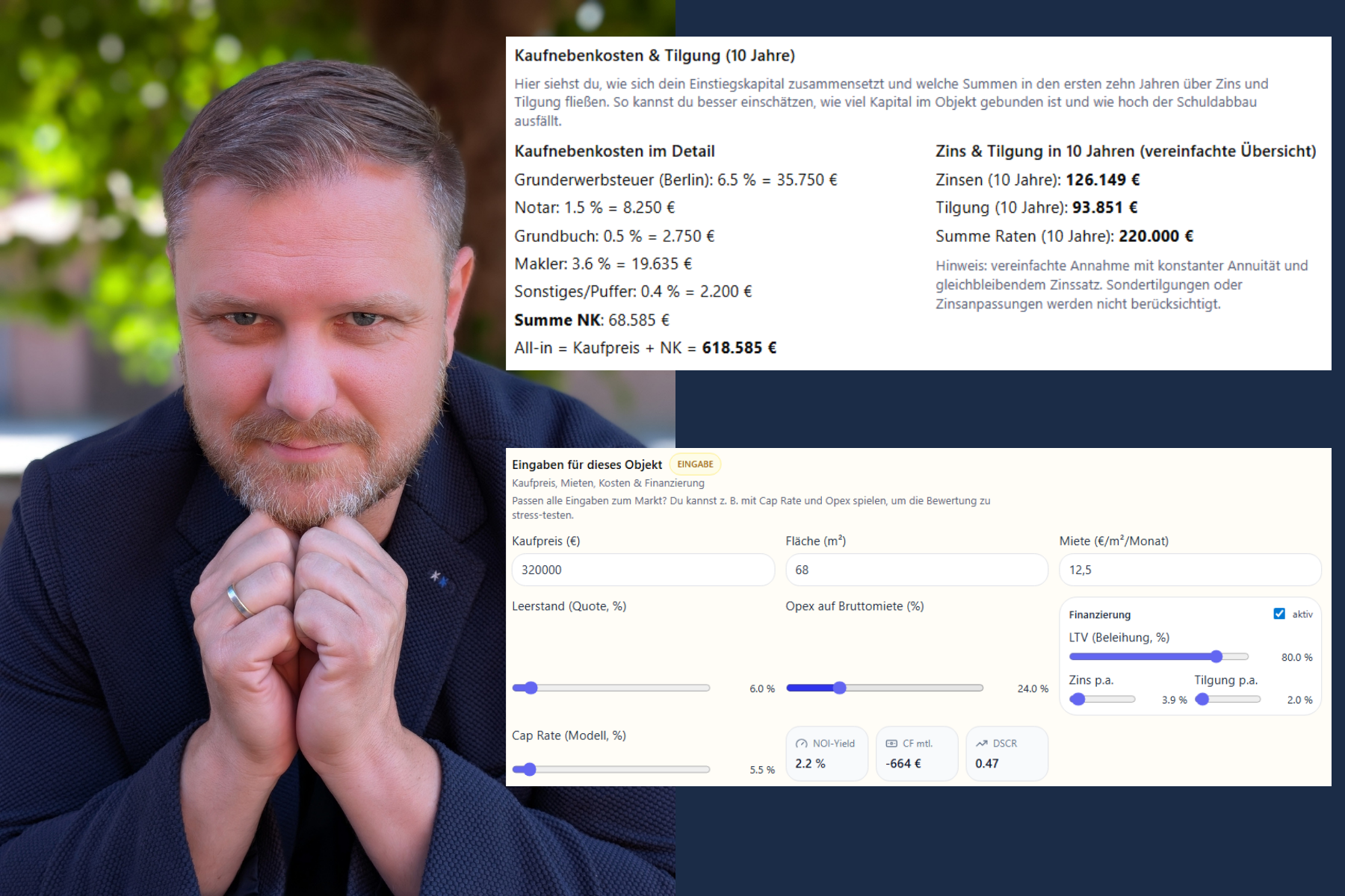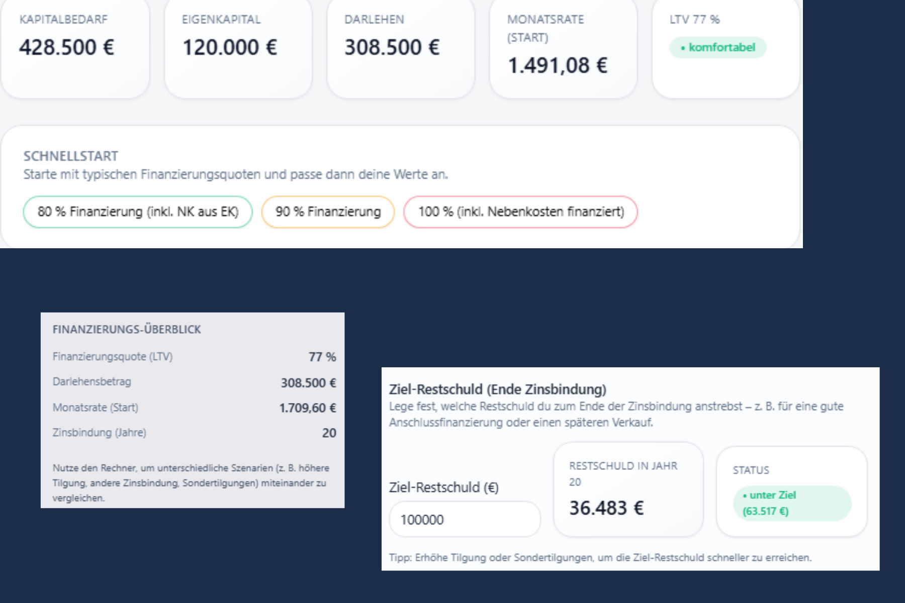 Unser Ziel ist es, dass jeder, ob Einsteiger oder erfahrener Investor, seine Immobilienentscheidungen besser versteht – und dabei ein Werkzeug in der Hand hat, das ehrlich, übersichtlich und verlässlich ist.